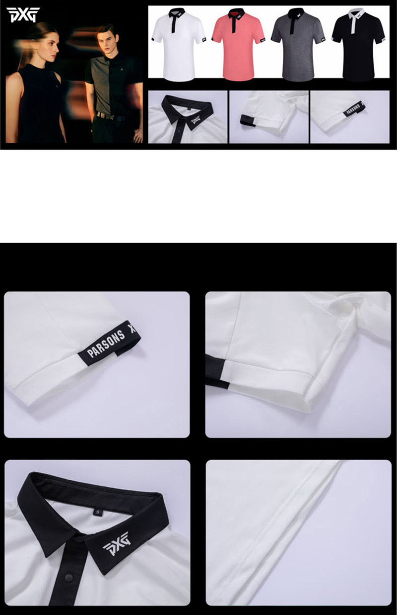 PXG 4종 남성 투톤 넥 카라 반팔 티셔츠
